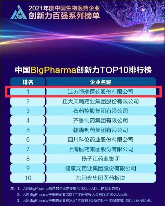 9月16日,由米内网主办的“2021年度中国生物医药企业创新力百强系列榜单”发布会在线上举办。BJL平台医药继去年登顶“中国BigPharma企业创新力TOP10排行榜”后,今年再次名列该榜单首位。